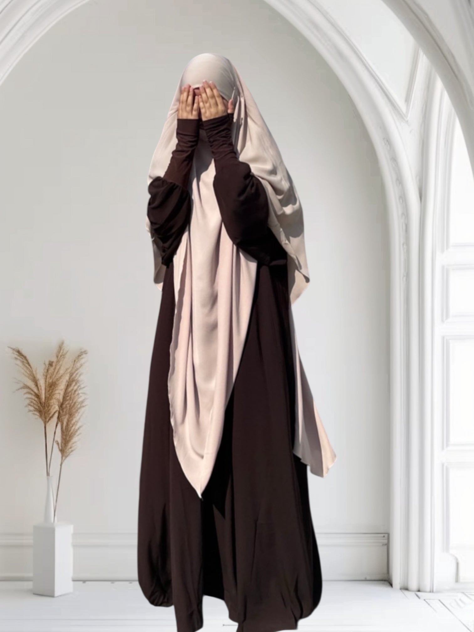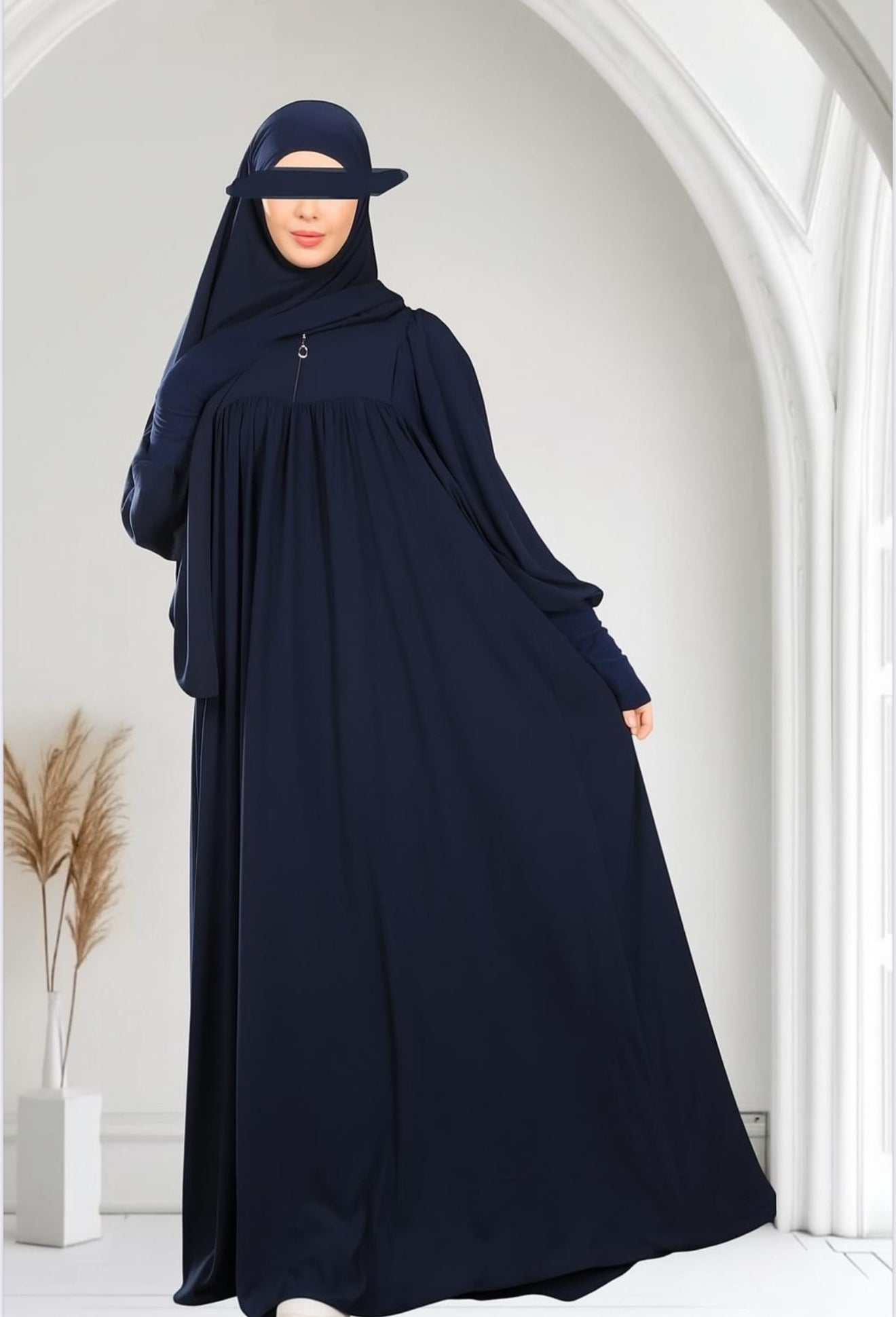 - Fließender Halb-Farasha-Schnitt: Weit und locker an Schultern und Armen, aber mit sanfter Struktur im unteren Bereich – sorgt für eine elegante, schmeichelhafte Silhouette